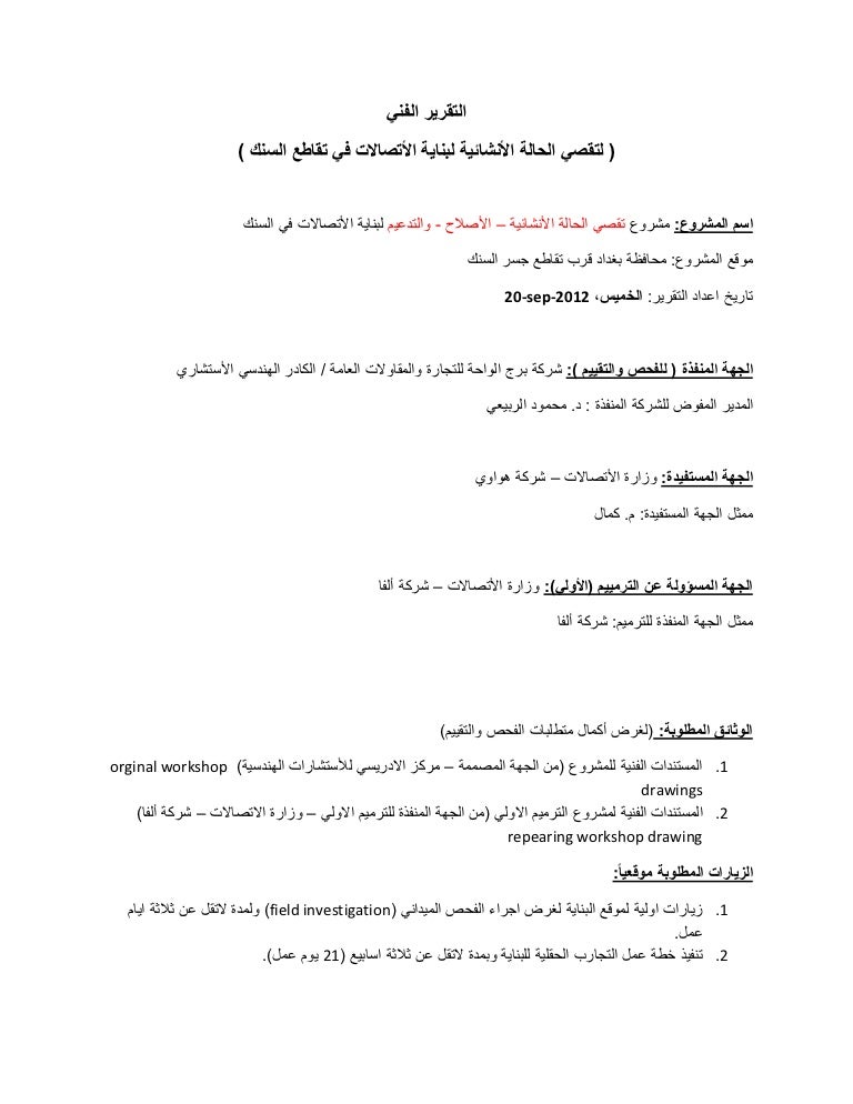 تقرير مرحلي عن مشروع البناء الجديد author. ن قدم لك من خلال مقال اليوم على موسوعة طريقة نموذج كتابة تقرير بمختلف أشكاله فالتقارير هي وسلية من وسائل التواصل التي تستعين بها المؤسسات الكبرى من أجل إيصال رسائلها بشكل رسمي. ومرفق معه نموذج تقرير فني لمشروع هندسي. نموذج تقرير فني عن مدى سلامة مبنى إنشائيا.