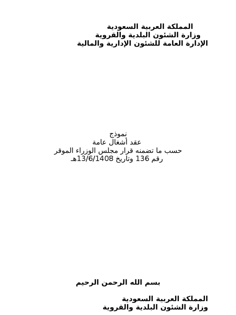 نموذج عقد خدمات عامة. وزارة المالية رقم 42 25517 وتاريخ 28 3 1428هـ. ابحث عن صيغة لعقد عمل متمثل في عقد بين زبون صاحب بستان وبين مقاول لتغطية البستان بشبكة حماية من الب ر د مع تحديد السعر للمتر مربع من الشبكة وتحديد وقت دفع الشطر الأول من المبلغ المستحق و وقت تسديد باقي المبلغ. عقد اتفاق العمل دوره ان يصون حق الطرفين او اي كان عددهم حيث انه يلزم. حسب ما تضمنه قرار مجلس الوزراء.
