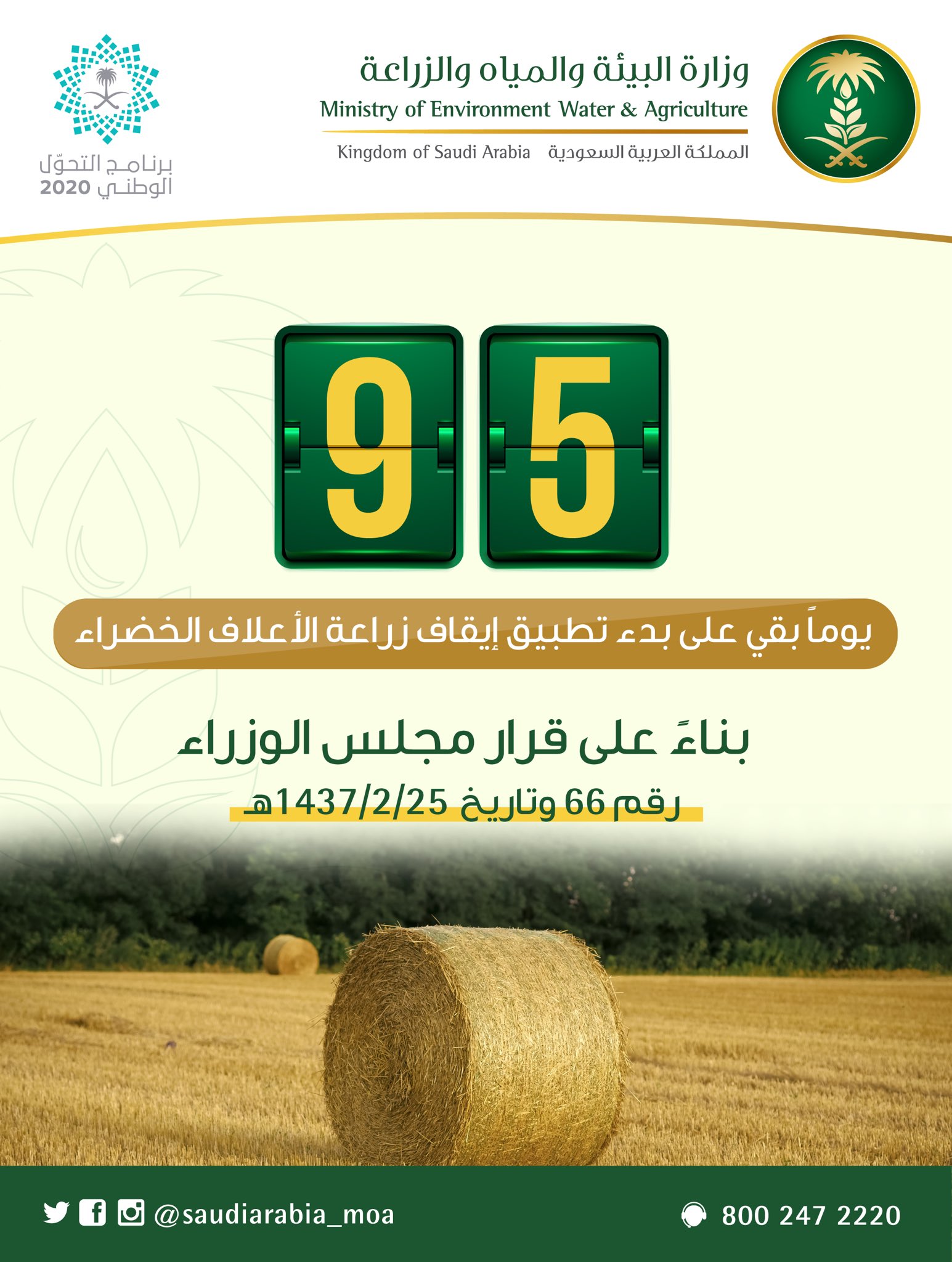 وزارة البيئة والمياه والزراعه. وزارة البيئة والمياه والزراعة currently selected. بوابة الوزارة وزارة البيئة والمياه والزراعة الخدمات الالكترونية خدمات الوزارة الخدمات الالكترونية. وزارة البيئة والمياه. تعمل وزارة البيئة والمياه والزراعة في إطار تحقيق مستهدفات برنامج التحول الوطني على ضمان استدامة الموارد الحيوية من خلال تحقيق الأمن الغذائي وضمان استفادة مستدامة من الموارد المائية وحماية البيئة من الأخطار الطبيعية.