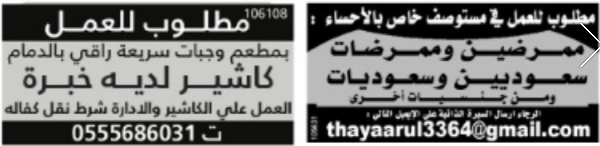 وظائف المبوبة الدمام اليوم. لم يرجع بحثك عن هذا التخصص أي نتائج الرجاء إعادة البحث بكلمات أخرى. وظائف جريدة المبوبة الجمعة في الدمام السعودية اليوم الجمعة 15 مارس 2019 2019 03 15 ٨ رجب ١٤٤٠. وظائف الدمام السعودية نوفمبر 2020 تصفح يوميا أحدث وظائف الدمام السعودية نوفمبر 2020 سجل سيرتك الذاتية الان وتقدم الى وظائف الدمام السعودية نوفمبر 2020 على وظايف نت. وظائف اليوم الجمعة السعودية 22 02 2019 وظائف المبوبة الجمعة 22 02 2019 وظائف الدمام اليوم 22 فبراير2019 وظائف المبوبة 2019 وظائف اليوم الجمعة 22 02 2019 وظائف جريدة المبوبة الدمام 22 02 2019 وظائف جريدة المبوبة الرياض السعودية اليوم.