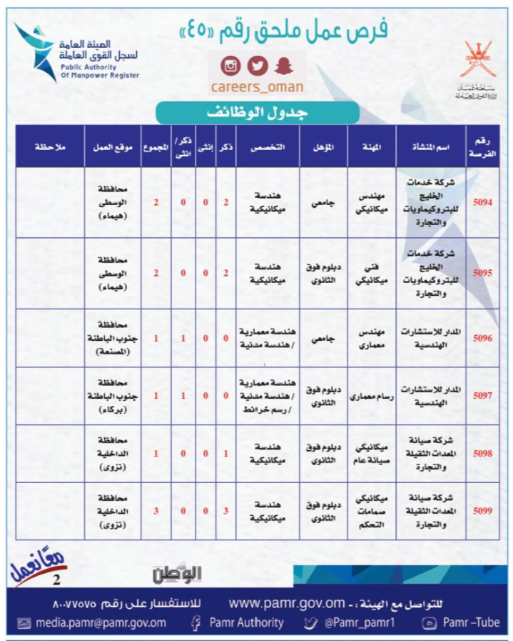 وظائف شاغرة فى ع مان فى موق التوظيف الأول فى ع مان و دول الخليج العربى تنقيب ع مان.